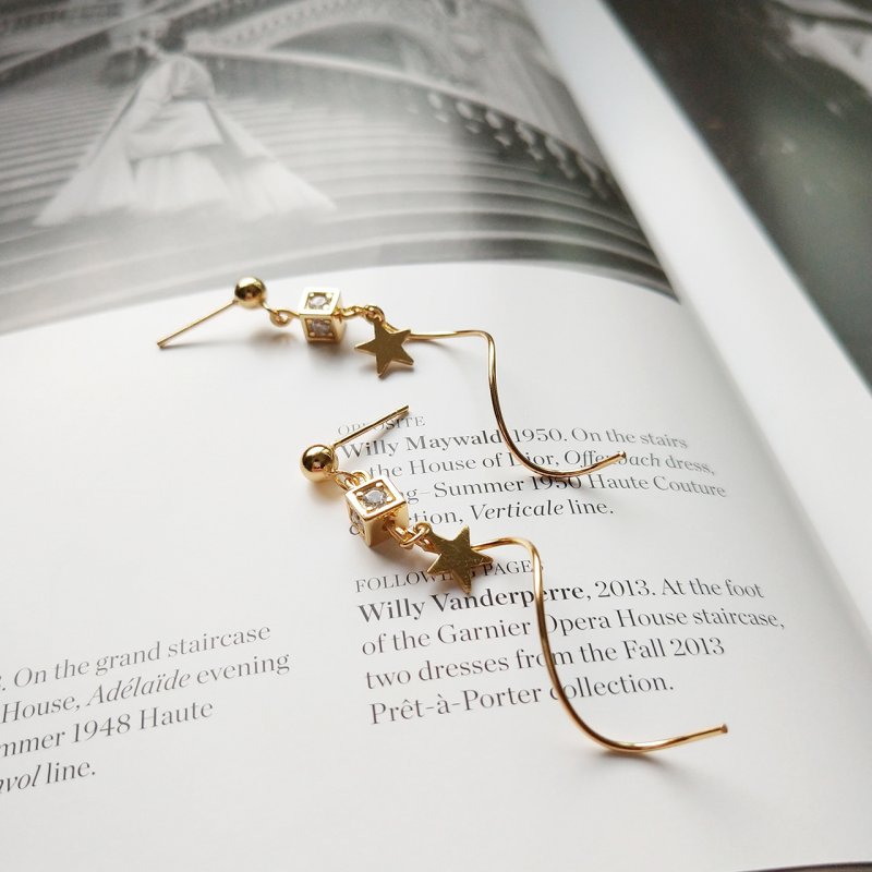 Simple and fashionable long style geometric silver needle earrings, cold personality earrings