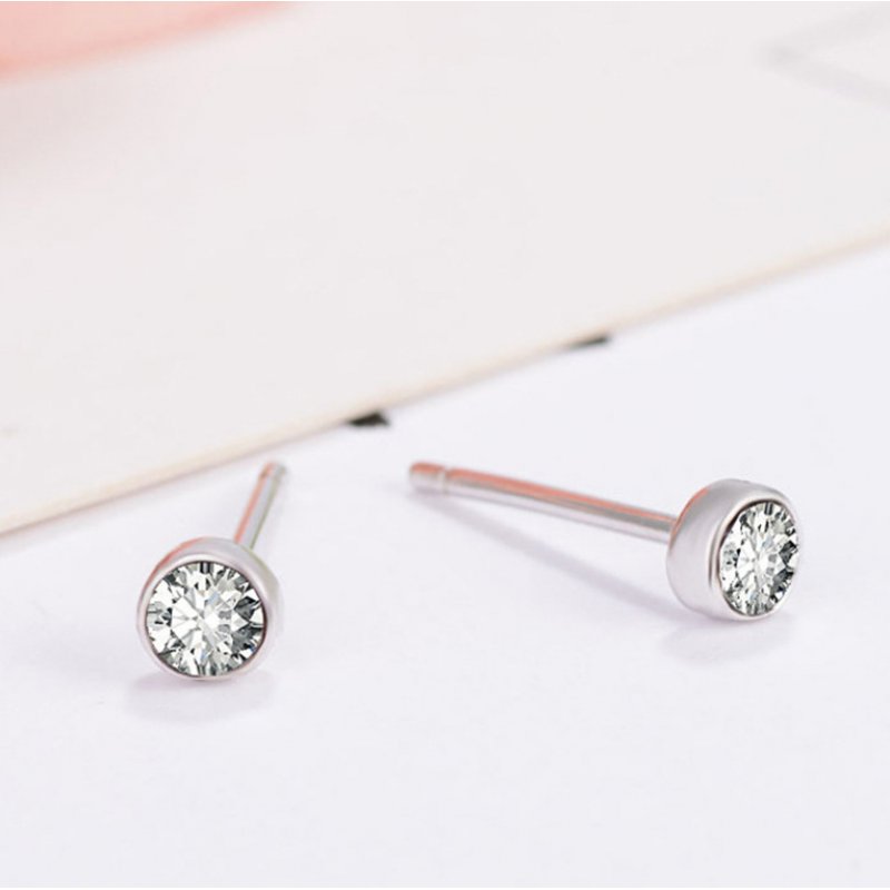 Small round diamond earrings women's temperament, simple and fashionable edging round ear jewelry, mini diamond earrings