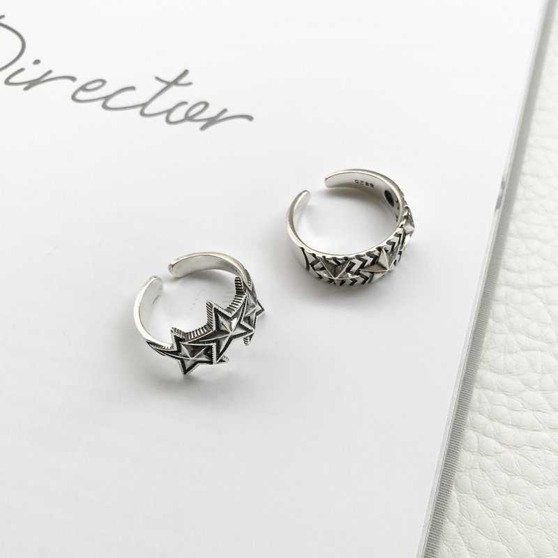 S925 sterling silver retro rock art style plain silver big five-pointed star open ring