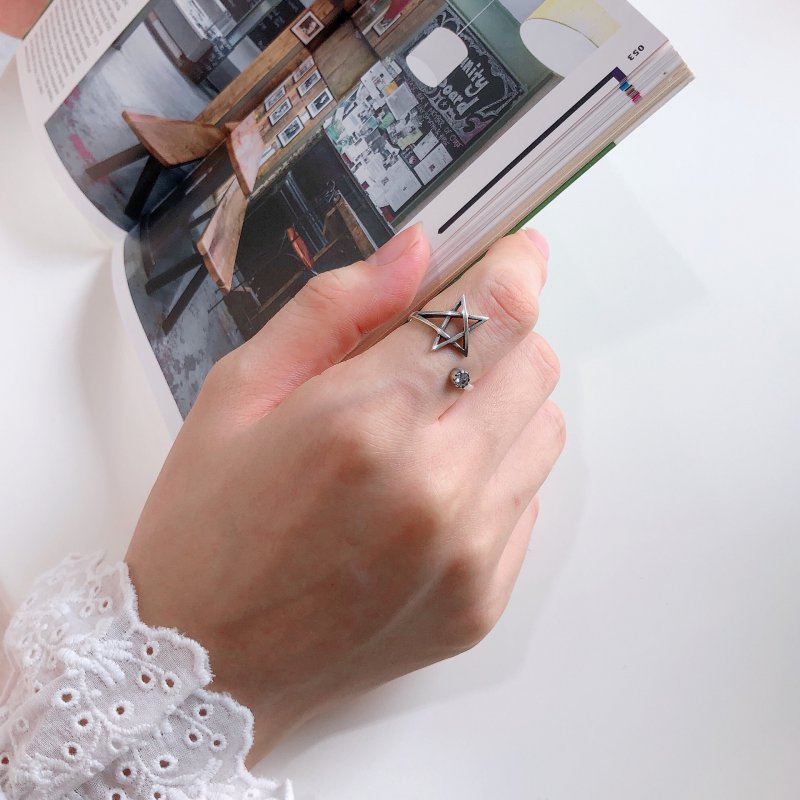 Minimalist wild trendy net red 925 sterling silver silver star ring ring index finger open ring