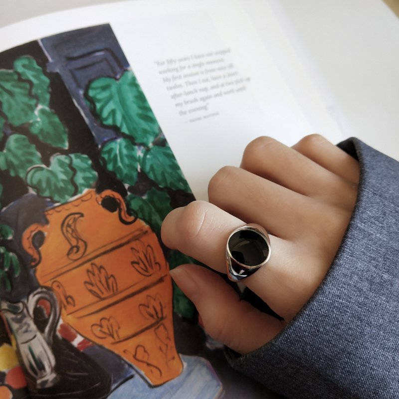Jewelry 925 sterling silver retro heavy industry glossy epoxy open ring finger ring jewelry fashion