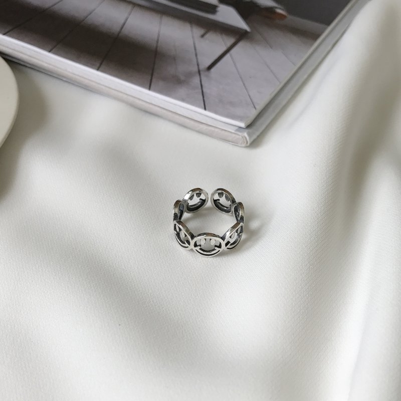 S925 Sterling Silver Hollow Mesh Opening Antique Retro Smiley Ring End Ring