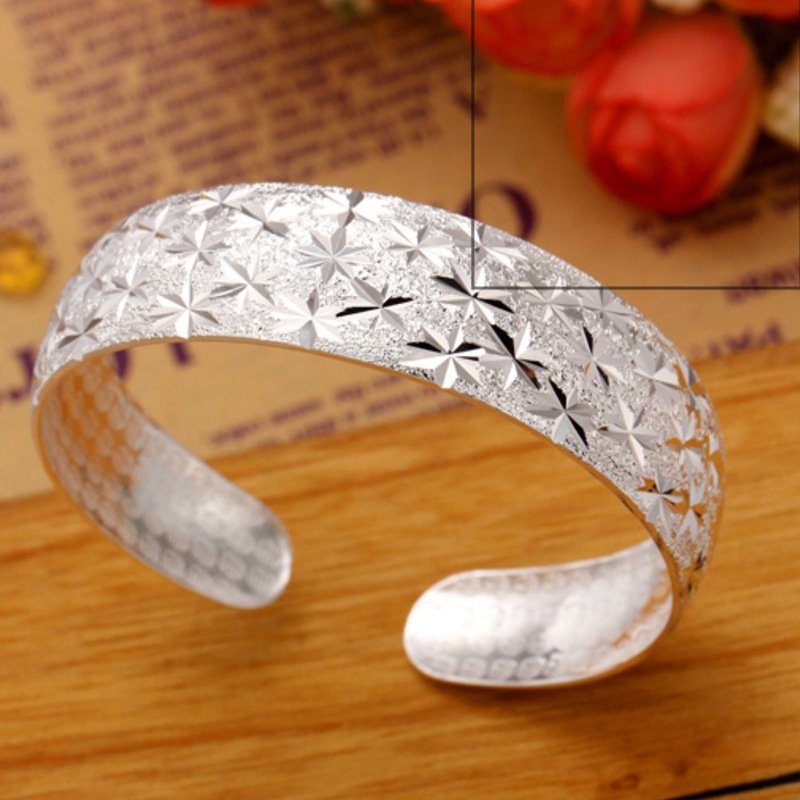 Gypsophila wide version adjustable bracelet white copper 999 silver bracelet hand jewelry